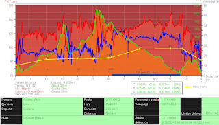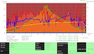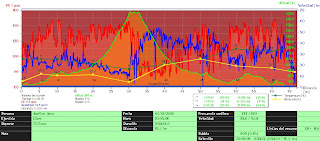Desde la cima del puerto el viento ayuda bastante y en cuanto empiezo a bajar la bici desliza de una forma espectacular. La lanzo un poco (lastima de no llevar hoy el 11) y enseguida se pone a 70-75 km/h. También aprovecho para probar como va el nuevo cuadro a esas velocidades y con las ráfagas de viento que había hoy, sin ningún problema, este G5 es muy estable. Ya sin terminar la bajada y bien probado todo toco un poco el freno y continuo bajando mas tranquilo (tampoco es cuestión de jugársela mas de lo debido). El resto de bajada sin forzar demasiado y rodando con facilidad hasta casa.